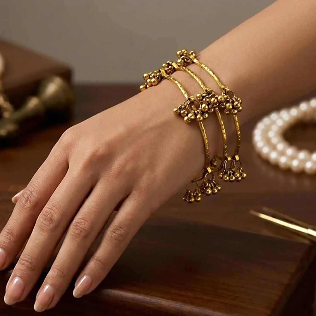 Elegant and timeless, the Antique Kashmiri Bangle features a beautifully detailed traditional design that adds a graceful touch to any outfit. Perfect for festive occasions or everyday wear.