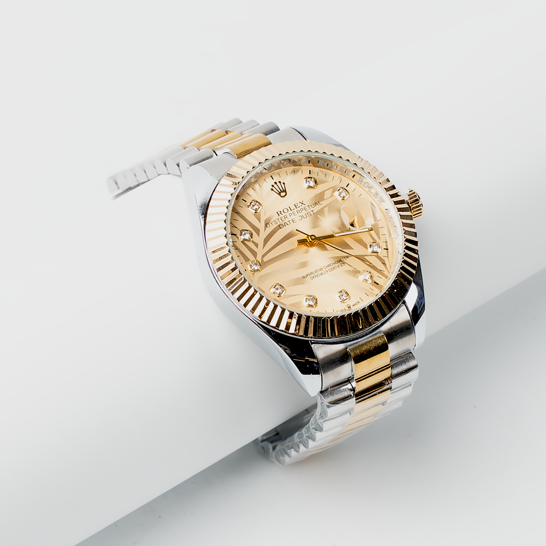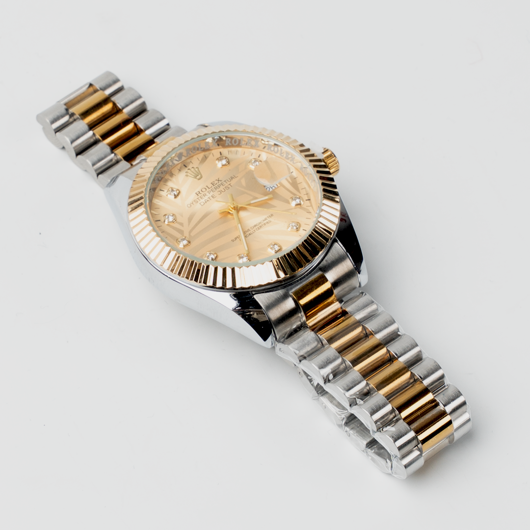 Featuring a striking gold dial, polished stainless steel case, and a refined two-tone bracelet, it delivers a premium look suitable for both formal and everyday wear. Designed for durability and visual appeal, this watch is a timeless accessory for any collection.