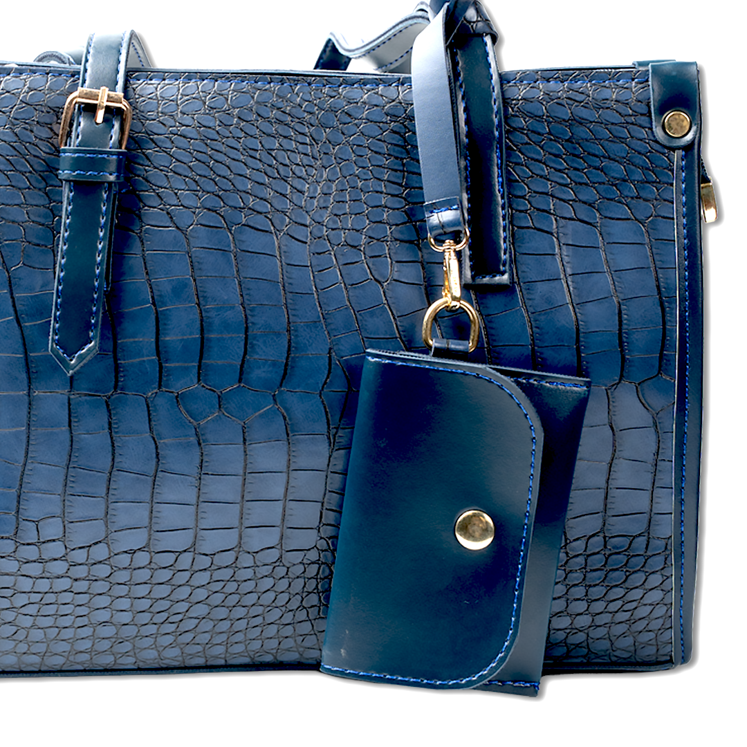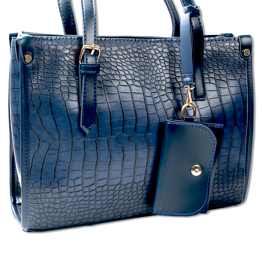 A refined structured tote bag crafted with an elegant croc-embossed texture, designed to elevate everyday style. Finished with sleek dual handles and a matching detachable pouch, this bag combines timeless sophistication with practical functionality, making it ideal for work and daily use.