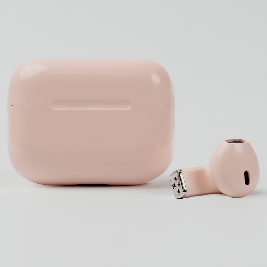 • Soft blush-pink charging case with minimalist design