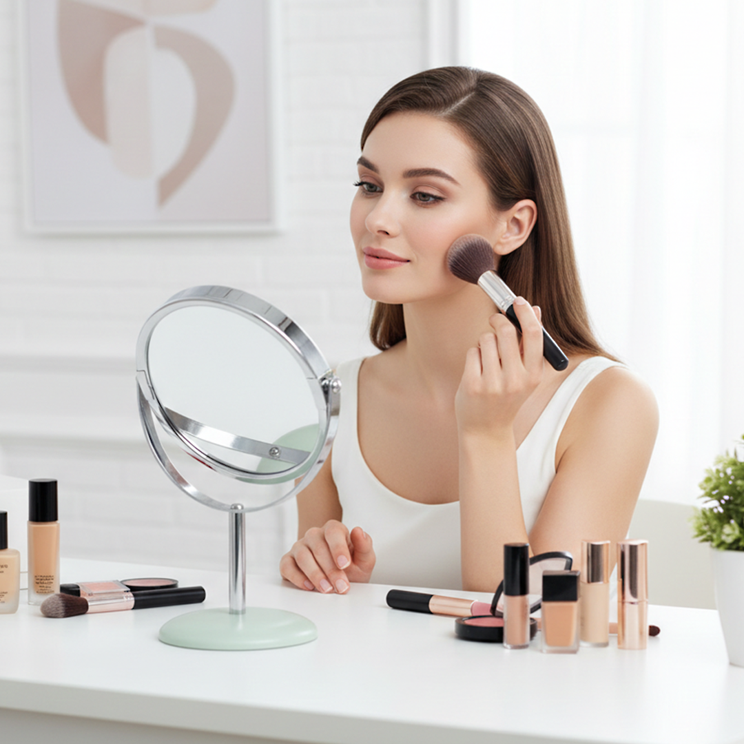 Its sturdy design ensures stability while the compact size makes it ideal for desks, vanities, and small spaces. Whether you're getting ready for the day or enhancing your room’s aesthetic, this mirror is a perfect combination of beauty and practicality.