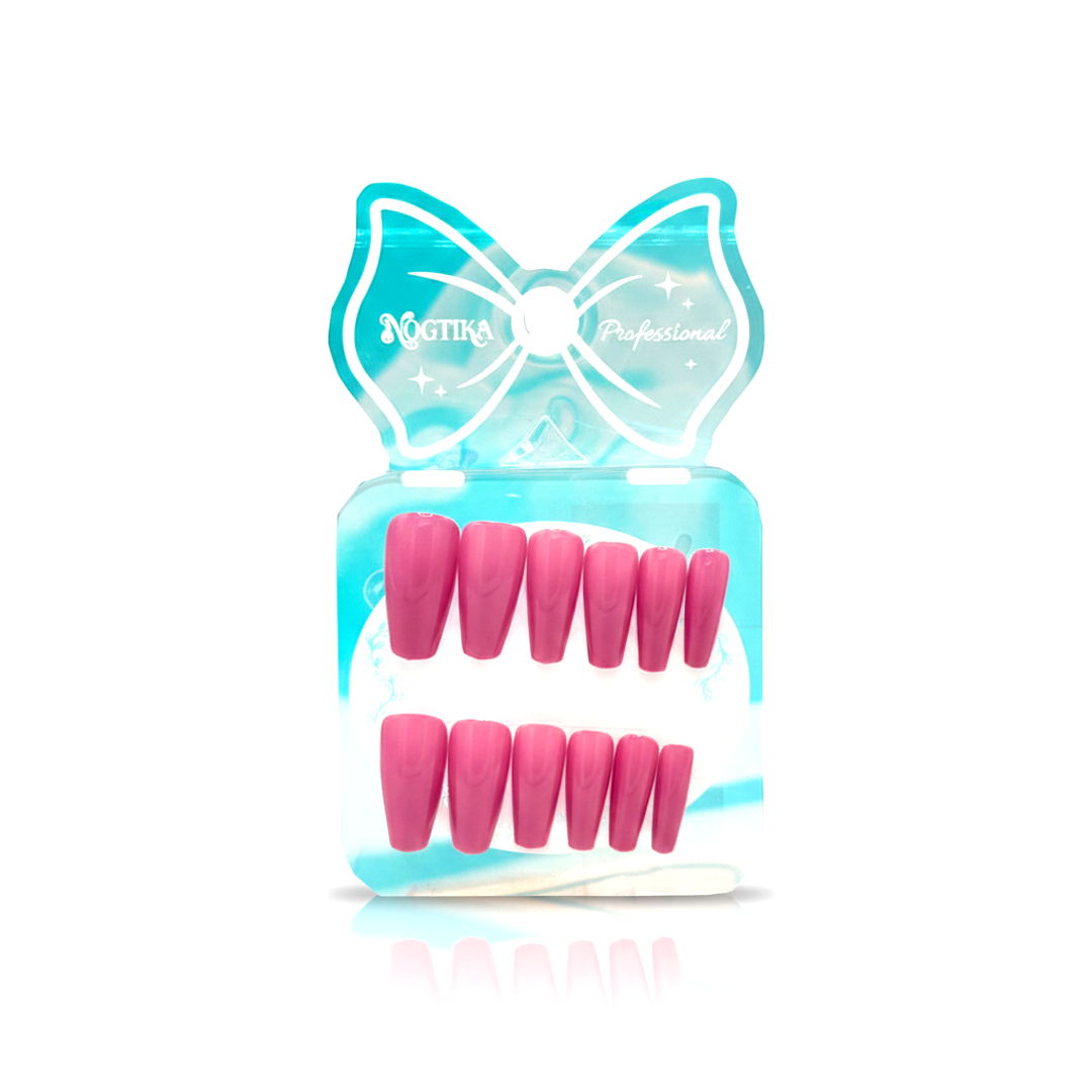 A classic rose pink shade in a sleek coffin shape, offering a clean and polished look. Designed for easy application and long-lasting wear, these press-on nails provide a smooth, salon-quality finish suitable for everyday elegance or special occasions.